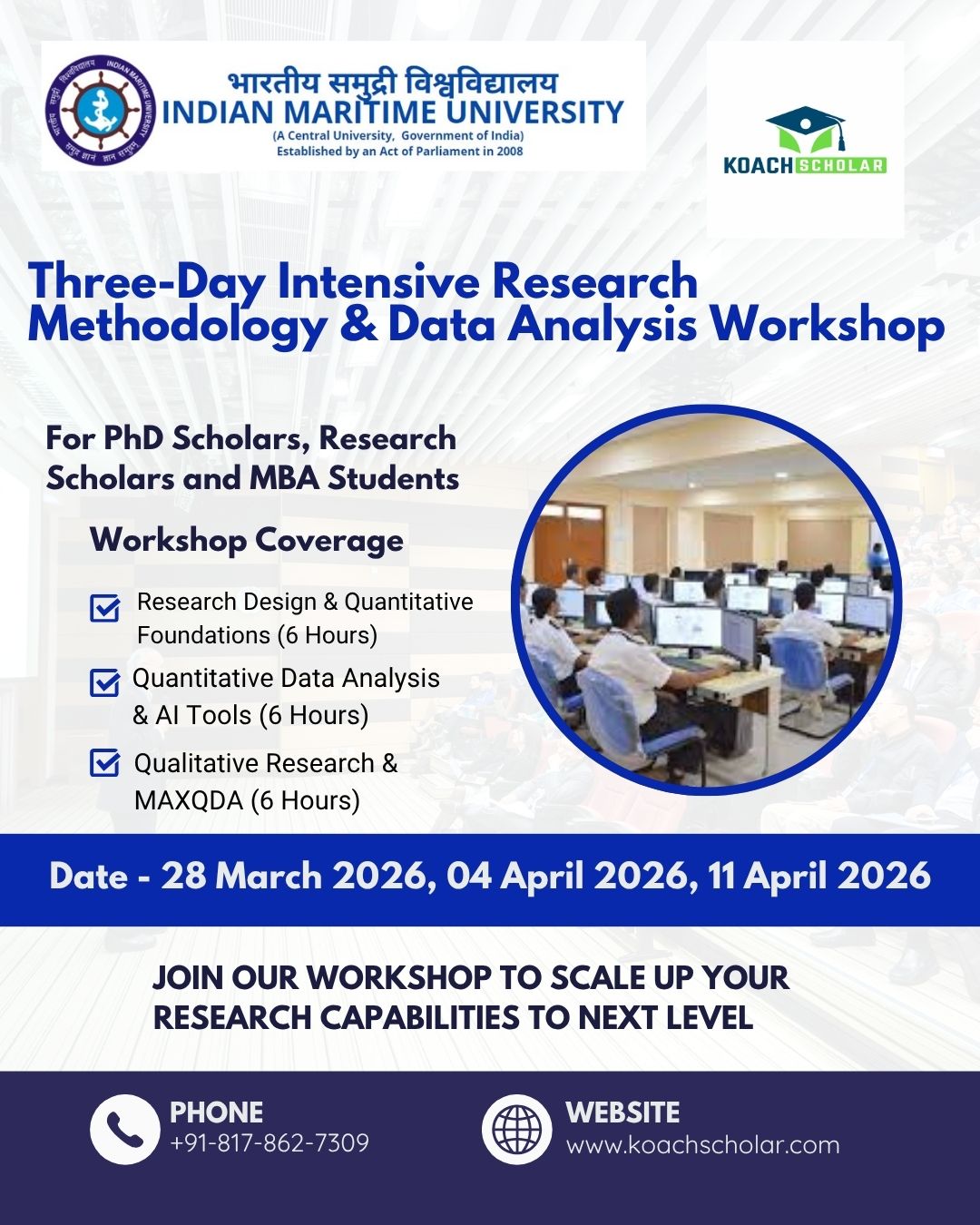 Koach Scholar is MSME-registered edtech venture led by education and technology experts, providing high-impact training, mentorship, and research guidance for PhD scholars, faculty, and early-career researchers.